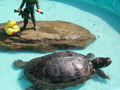My turtle Henry lives a lavish life near the beach in New Jersey. He is happy that spring and summer are finally here so he can enjoy the great outdoors. During warm weather, he has free roaming access and comes and goes as he pleases and enjoys an occasional splash in the pool!